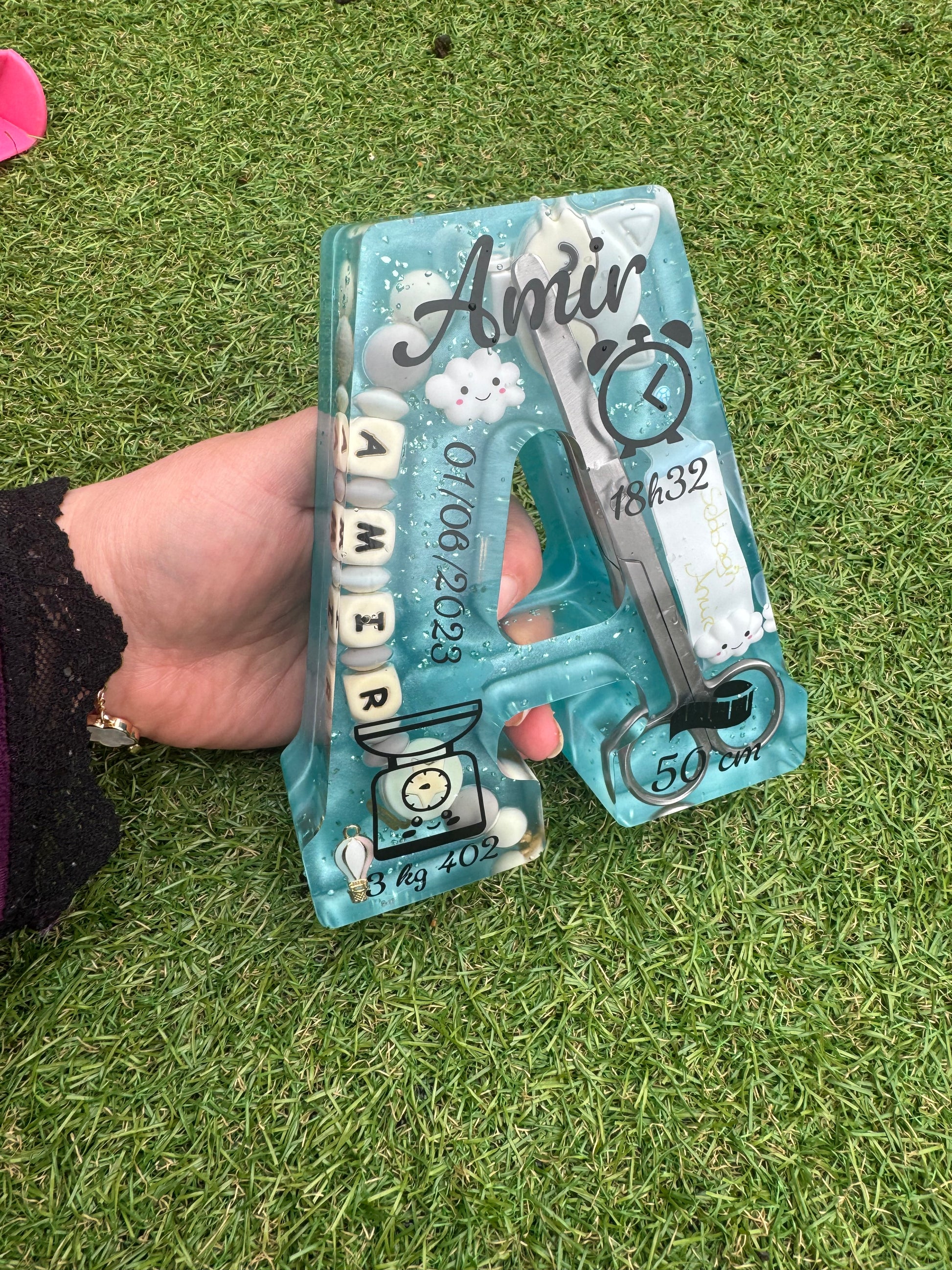 Lettres de naissance personnalisées – Souvenirs précieux en résine