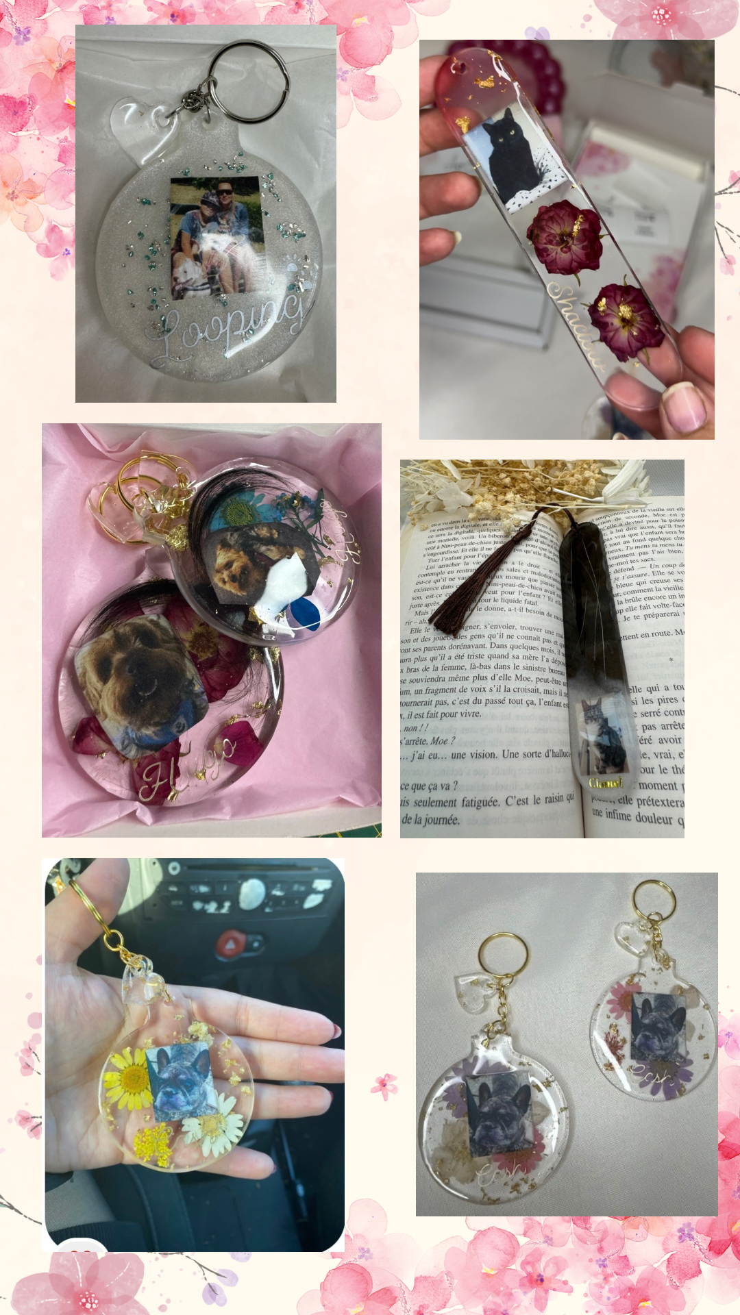 Transformez le souvenir de votre animal de compagnie en un objet unique et émouvant. Que ce soit un porte-clés ou un marque-page, je crée pour vous une pièce personnalisée avec :